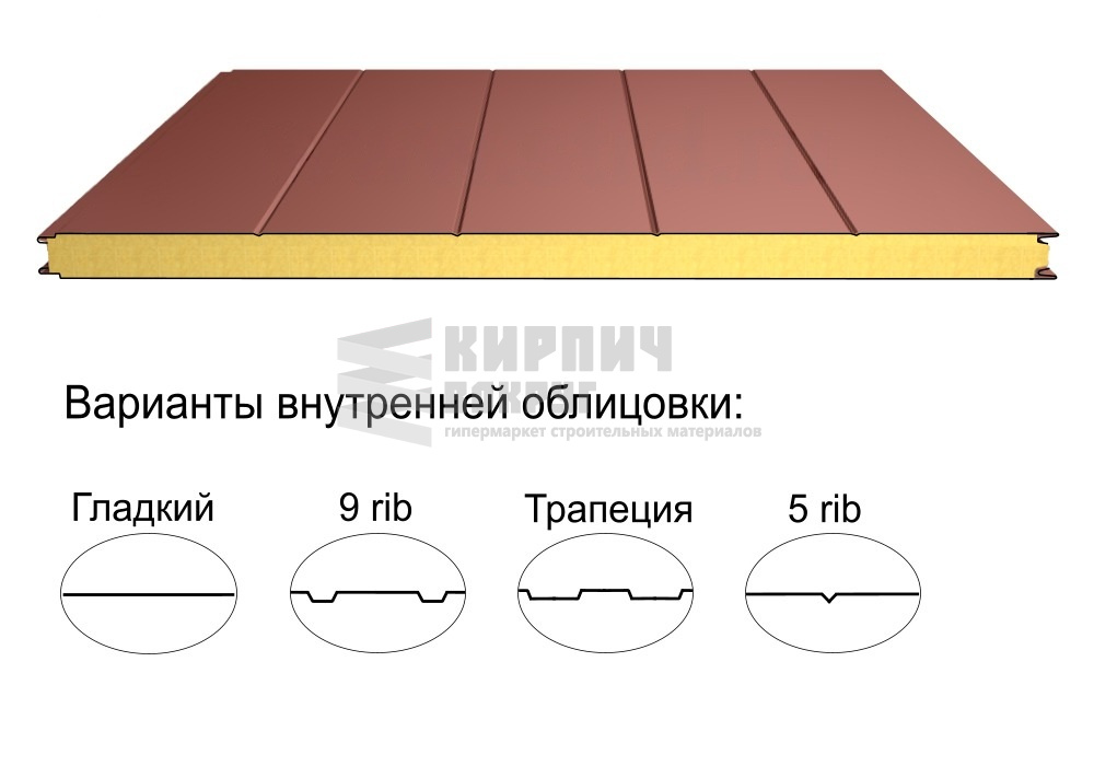 В интернет-магазине "Кирпич Вокруг" Вы можете купить Стеновая трёхслойная сэндвич-панель 5 rib 100мм 1000мм с видимым креплением минеральная вата Полиэстер Доборник в Пушкино, а наши специалисты готовы вам помочь с выбором по адресу: , или оказать консультацию по телефону: .