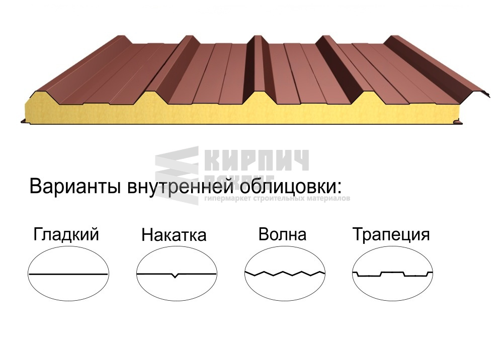 В интернет-магазине "Кирпич Вокруг" Вы можете купить Кровельная трёхслойная сэндвич-панель кровельный профиль 50мм 1000мм с видимым креплением минеральная вата Полиэстер Металл Профиль в Пушкино, а наши специалисты готовы вам помочь с выбором по адресу: , или оказать консультацию по телефону: .