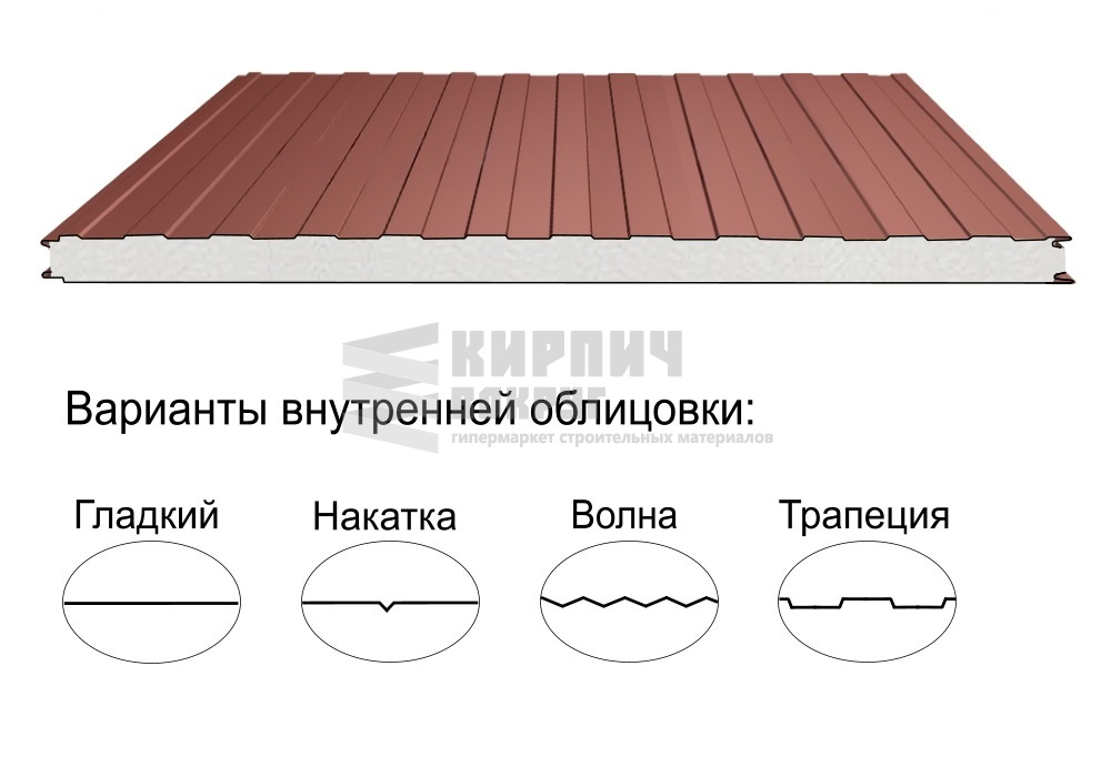 В интернет-магазине "Кирпич Вокруг" Вы можете купить Стеновая трёхслойная сэндвич-панель трапеция 50мм 1190мм с видимым креплением пенополиизоцианурат Полиэстер Металл Профиль в Пушкино, а наши специалисты готовы вам помочь с выбором по адресу: , или оказать консультацию по телефону: .